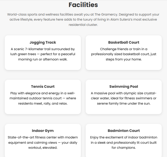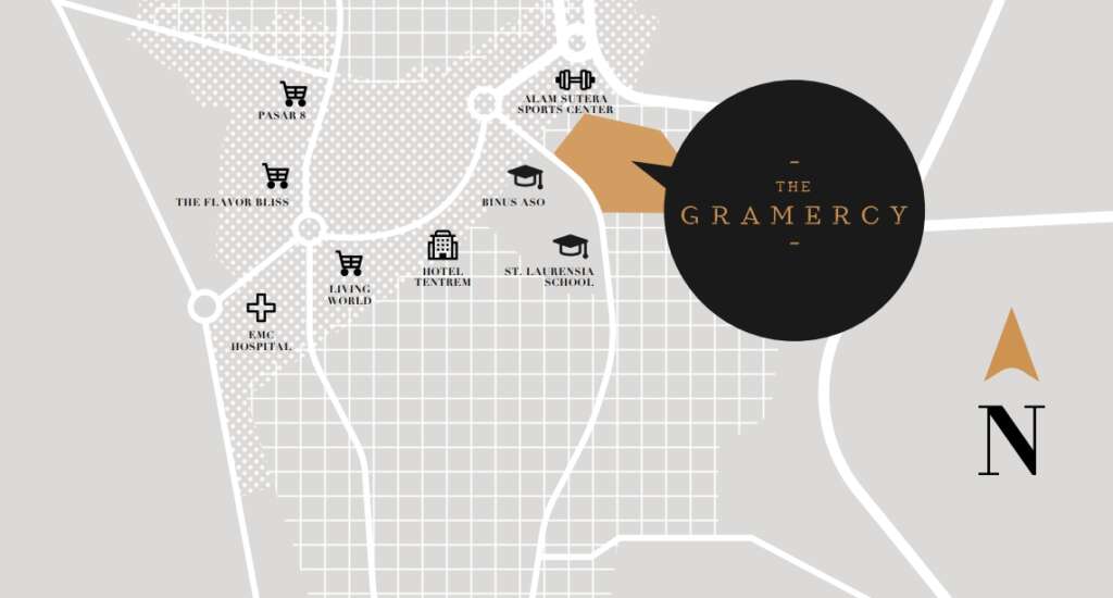Located in Alam Sutera. The Gramercy is an oasis from the bustling urban lifestyle. A well-built residential development, Alam Sutera offers a better quality of life, amidst mature greenery, complete sports facilities, office complexes, entertainment, and other support infrastructure. The Gramercy provides all your needs. A place to express gratitude and begin your story.
