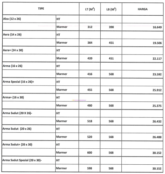 Pricelist The Gramercy (in Million)