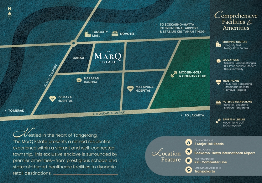The MarQ Estate merupakan hunian terbaru dari Lippo Land Grup yang berlokasi sangat strategis karena berada diantara Kota Tangerang di Samping Metropolis Town Square Tangerang.